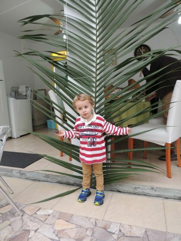 A decoração da casa de praia já foi uma diversão para o aniversariante. Meu pai conseguiu umas folhas gigantes no horto florestal de Floripa e as espalhamos pela mesa e por toda a área da festa.