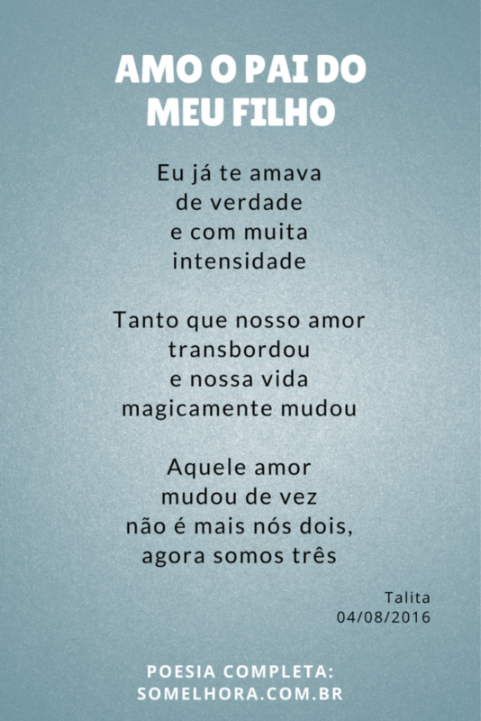 E para as mães que passam por aqui, que também continuam se apaixonando pelos pais dos seus filhos, fica a dica. Compartilhem essa poesia com eles! Manda o link do post para o WhatsApp dele ou cola a poesia na timeline do Facebook.