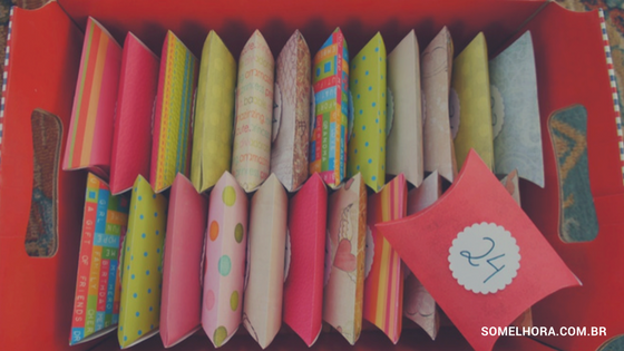 – retalhos de papel branco (para escrever as surpresinhas de cada dia)