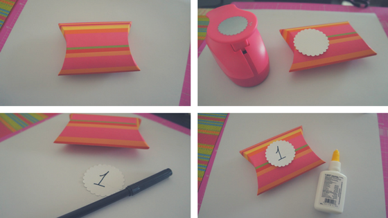 Eu usei um furador circular para fazer os círculos brancos para o fundo dos números. Quem não tiver, pode usar uma moeda de molde ou fazer um fundo quadrado ou disforme mesmo!